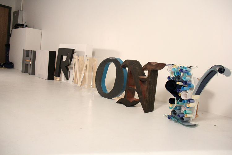 Collaborative dimensional word project. Each team member had to sketch, draw, plan dimensions, create renderings, fabricate and build our letters to the specifications planned in our dimension plans.
